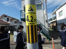 | 私達チームイッパンは、「避難訓練を計画し、実施する」を目標に準備を進めてきました。 ① 最初に避難訓練運営ゲーム(略してHUG)を行いま した。 〈目的〉避難所の出来事や避難者対応を模擬体験する このゲームは、避難者が次々と来るので、その対応を班の人達と協力をして解決していきました。 〇結論 避難所は、避難者だけが来ると思っていたので、避難物資やテレビ局の対応をどうするかなどが悩みました。 もし、自分達が避難所運営をする側になった時、避難者の不安や混乱を招かないように丁寧な対応を心がける事が大切ということがわかりました。 ② 次に、防災士の髙島さんから話を聞く。 〈目的〉避難訓練の計画にあたっての注意事項や、行い 方を教えてもらう ・地震についての情報 ・災害時のトイレについて ・髙島さんが行った避難訓練のやり方 などを教えてもらいました。 〇結論 私達が計画していた避難訓練をもっとよりよい物にするアドバイスをもらいました。 防災は地震や津波だけでなく、台風や大雨などにも避難訓練が必要だとわかりました。 地震や津波が起こった時、避難所は最初にトイレを 「使用不可」にすることが大切ということを知りました。 髙島さんの話を聞いた時に、フィールドワークを行ってみてはどうかという案をいただいたので、実際にフィールドワークを行いました。 ③ フィールドワークを行う 〈目的〉実際に歩いてみて、危ないところや安全なところ を自分の目で確かめる。 和歌山商業高校からの避難先は和歌山県民文化全館ですが、和歌山市立今福小学校との合同避難訓練を計画していたので小学校まで歩き、海抜の高さを調べて、周辺住民の方々にインタビューを行いました。 ![]() [海抜] ・ポレポレはうす付近 4.2m ・今福小学校正門 5.7m ・今福小学校裏門 5.0m ・県営今福第2団地 5.8m これらの海抜を平均した結果5.24mになりました。 南海トラフ地震の和歌山市の津波の想定の高さは 8mなのでさらに3m高い場所に逃げないといけないことが分かりました。 [インタビュー] 50代・女性 Q.避難場所は知っていますか A.愛徳医療福祉センター、共同墓地、今福小学校、秋葉山 Q.大切にしていることは何ですか A.電話「171」→家族の安否・災害状況 家にいるときは逃げない→余計なケガを負うことがあ るから 寝床には何も置かない→固定するのも良いが置か ないのが一番良い 30代・男性 Q.避難場所は知っていますか A.県庁辺りの高台 Q.避難する際大切にしている事 A.物を取りに戻らない 慌てないように心がけている Q.避難用具の用意はしていますか A.していない 幼稚園の先生 Q.避難場所はどこですか A.地震の時は庭園 津波の時は3階→今福小学校→マンションの上階 Q.大切にしている事は A.子どもを全員避難できるよう先生が自分のクラスの子 を守る 〇結論 南海トラフ地震の津波の想定の高さは8mなので3m以上高い所に避難しなければいけないことがわかりまし た。 インタビューを通じて、避難場所は知っているが、避難用具の用意やタンスや食器用具などの固定をしている人が少ないことが分かりました。 〇以後の対策 ・家具の固定や避難用具の準備、避難経路の確認など の準備を行う ・災害が行った時、避難訓練を思い出して、安全にすば やく逃げられるようにする ・自分が避難所を運営する側になった時、髙島さんに教 えていただいたことを思い出して丁寧に対応する ・防災の知識を増やすために、パソコンや実際に地震 や津波を体験した人に話を聞いて情報を集める |