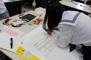 本校では、1学期から事前学習やグループワークを行ってきました。8月に行われた集中ワークショップでは、楽天株式会社様よりお越しいただいたファシリテーターの皆様と一緒に南海トラフ地震に対する防災・減災のためにアイディアを各班で検討しました。
